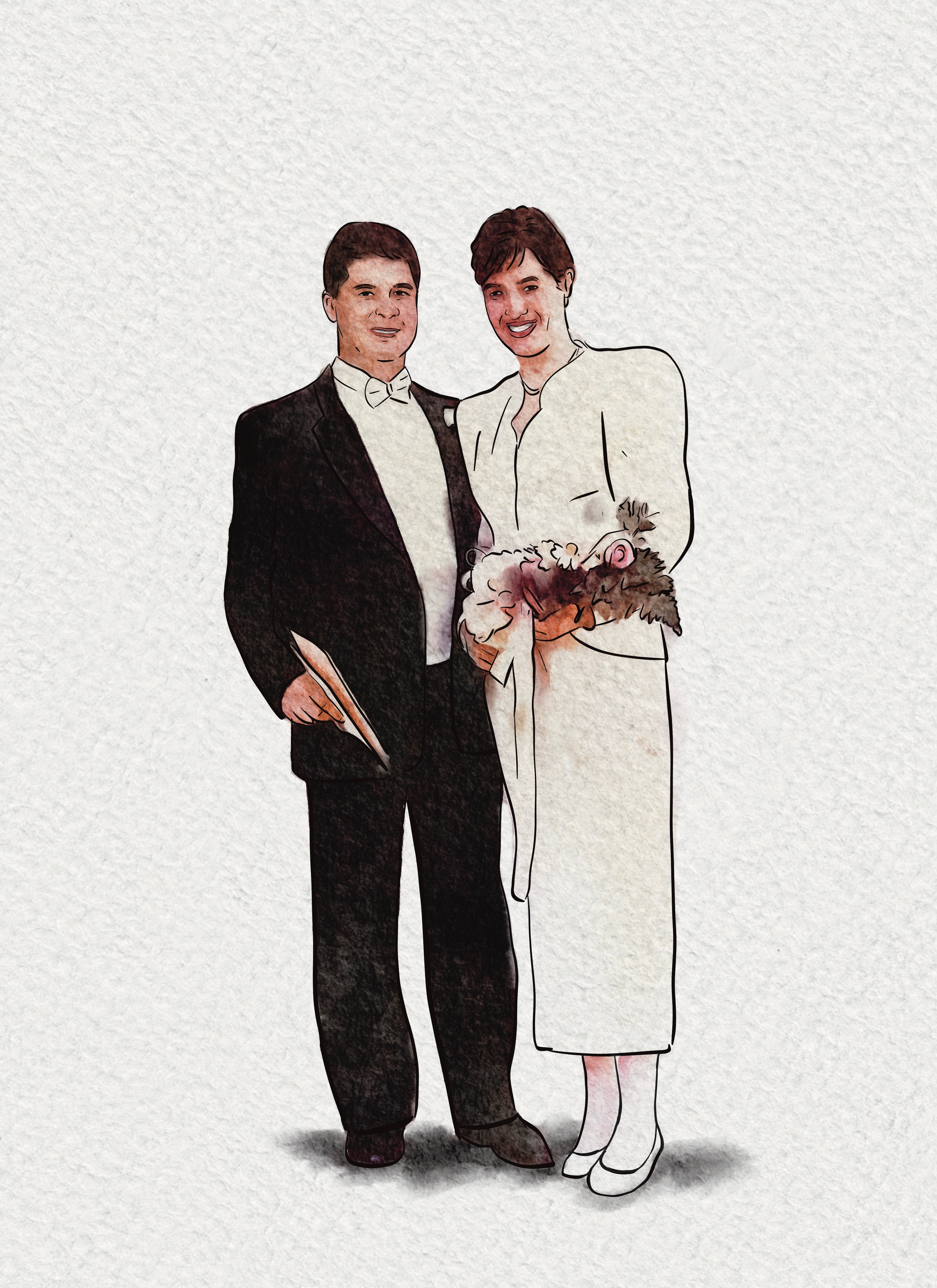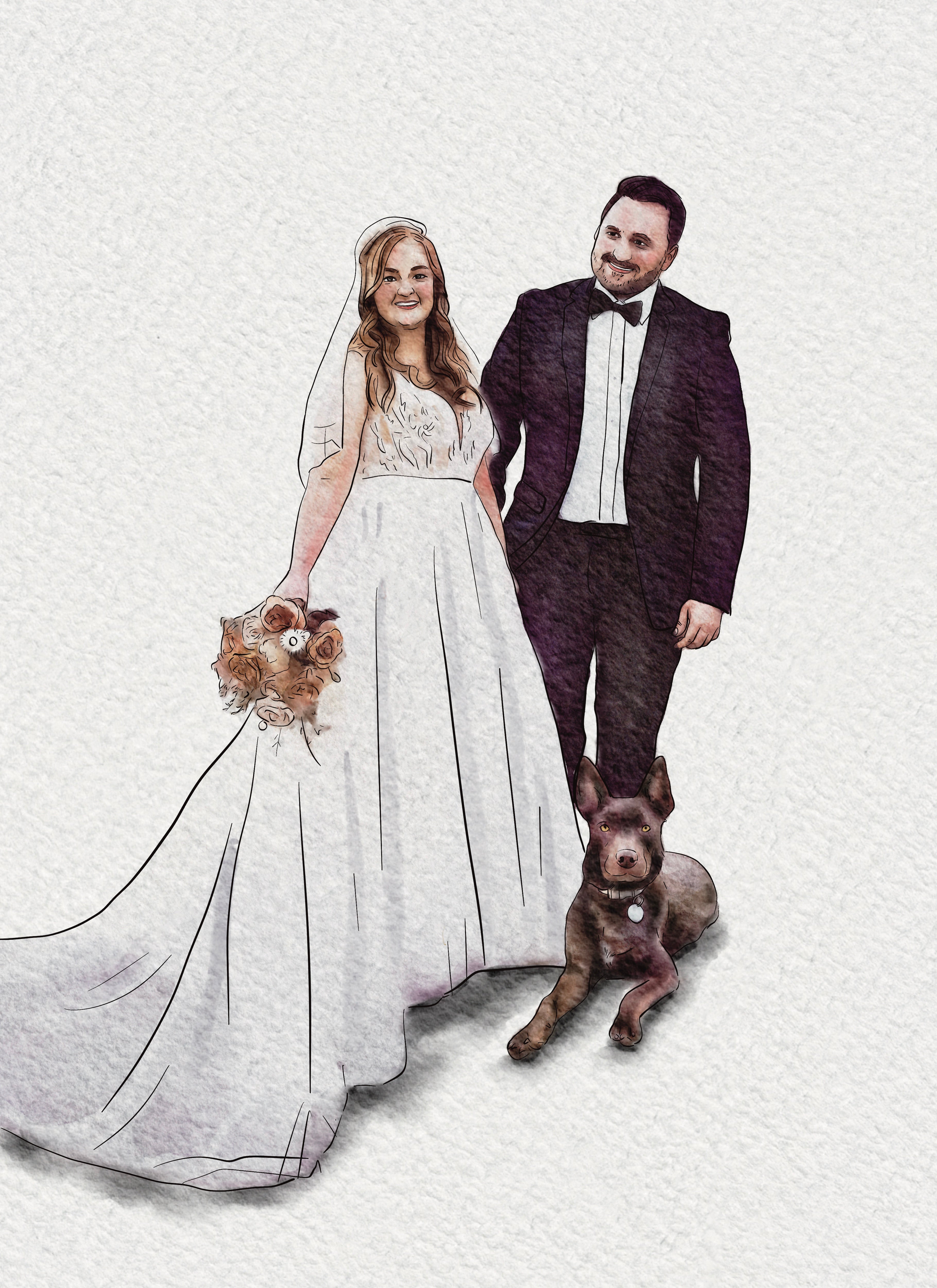 Many couples add personal touches—handwritten vows, special dates, beloved pets or someone who’s no longer with them. With custom backgrounds, revisions and details we can make your painting a one-of-a-kind tribute to your life together.