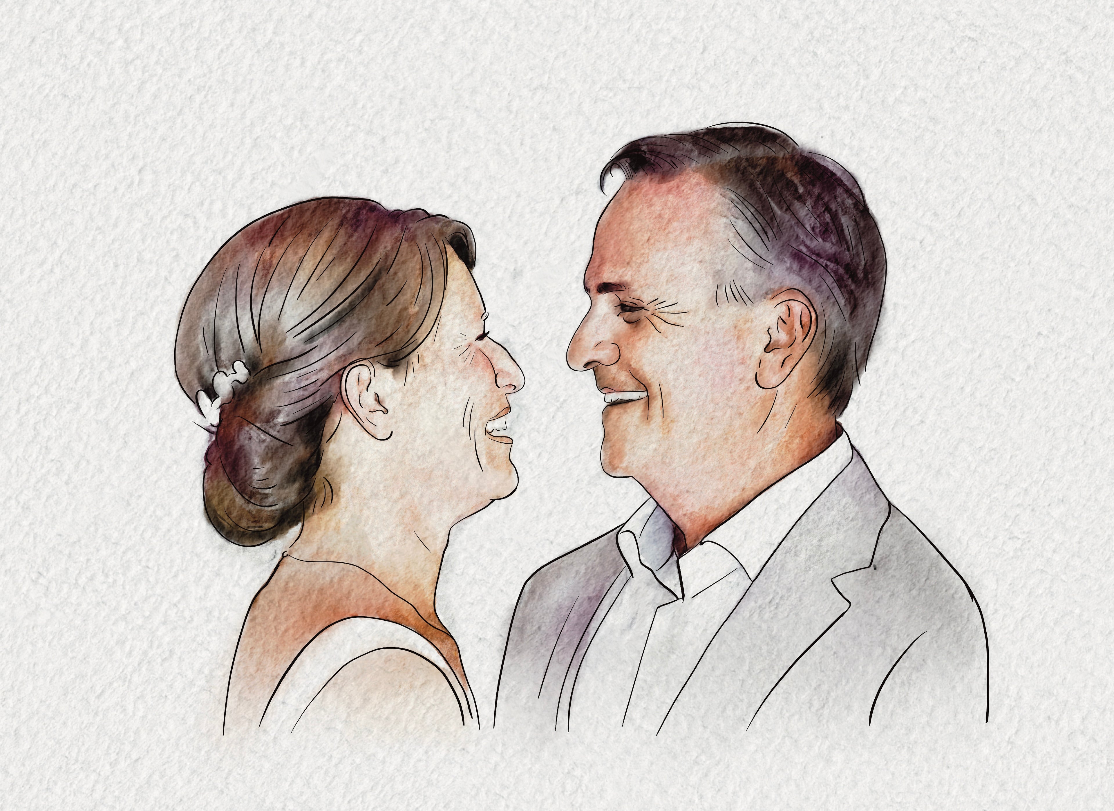 When choosing an anniversary painting, the medium matters. A watercolor portrait is soft and delicate—great for couples who like a light, modern or romantic feel. Its transparent layers and minimal detail is perfect for capturing emotional, everyday moments or travel memories. An oil painting is deep, textured and rich—timeless and heirloom quality. It’s best for formal portraits like wedding scenes or milestone anniversaries where the detail, contrast and presence of the painting makes an impact. Watercolor is often more affordable and quicker to complete, oil is luxurious and gallery-worthy. Whether you’re celebrating a quiet moment or a big milestone, both styles preserve your bond just in different emotional tones.